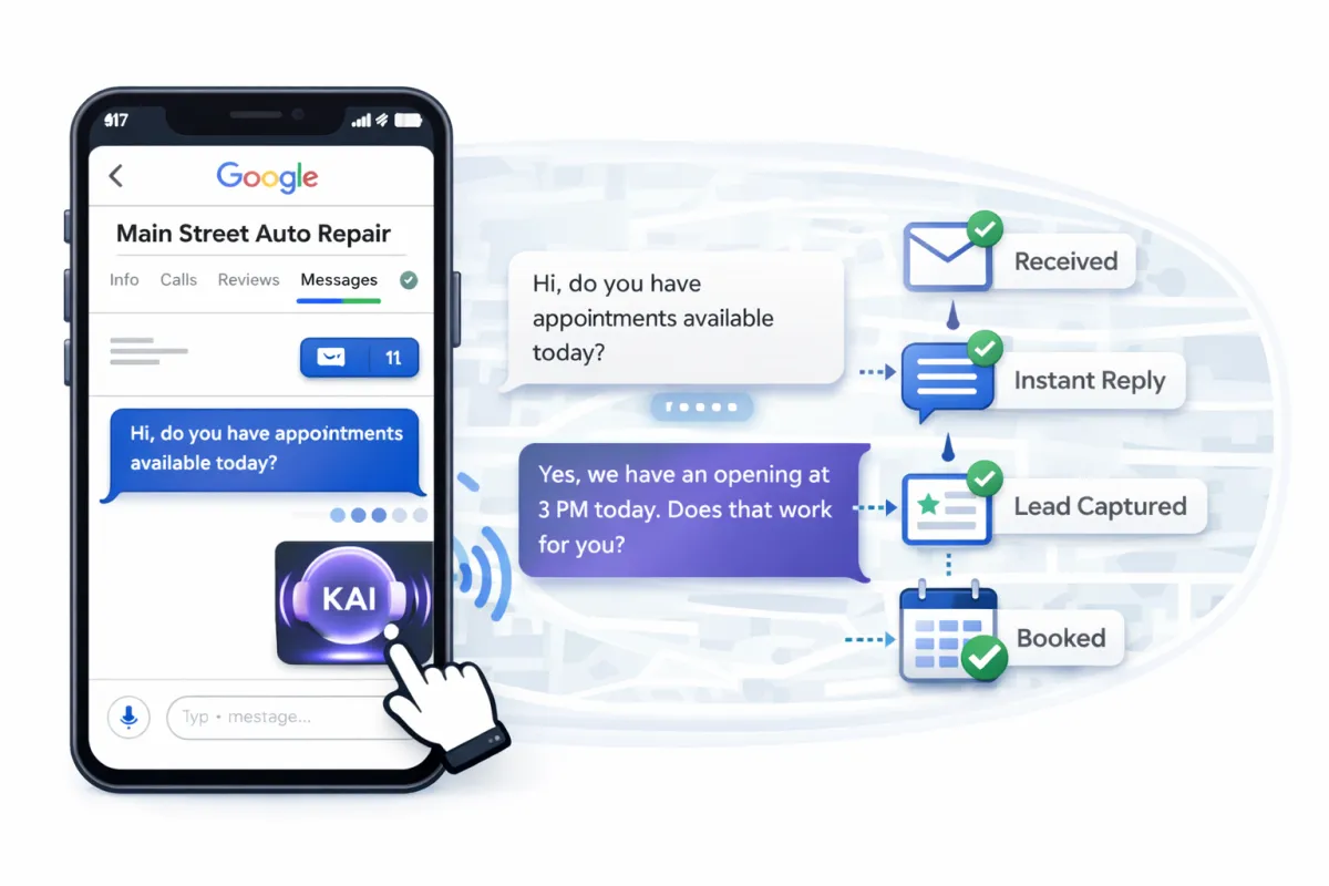 Most Maps users tap Call when they’re ready to act. KAI answers immediately, handles the conversation, and books next steps instead of letting high-intent calls go to voicemail.